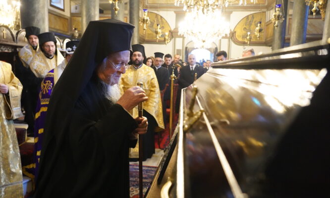 Η Α.Θ. Παναγιότης ο Οικουμενικός Πατριάρχης κ.κ. Βαρθολομαίος παρέστη συμπροσευχόμενος στην εξόδιο Ακολουθία του αειμνήστου Λεωνίδου Αστέρη, Άρχοντος πρώην Πρωτοψάλτη της Αγίας του Χριστού Μεγάλης Εκκλησίας, που τελέστηκε στον Πάνσεπτο Πατριαρχικό Ναό, την Παρασκευή, 6 Δεκεμβρίου 2024.  Της νεκρωσίμου Ακολουθίας προέστη ο Σεβ. Μητροπολίτης Ικονίου κ. Θεόληπτος, συμπαραστατούμενος από τους Σεβ. Μητροπολίτες Καλλιουπόλεως και Μαδύτου […]