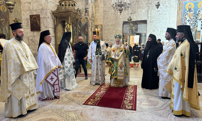 Περί τό τέλος τῆς θείας Λειτουργίας ἐπεσκέφθη τήν Μονήν διά προσκύνησιν ἡ Α.Θ.Μ. ὁ Πατήρ ἡμῶν καί Πατριάρχης Ἱεροσολύμων κ.κ. Θεόφιλος μετά Πατέρων Ἁγιοταφιτῶν καί ηὐλόγησε τόν λαόν.