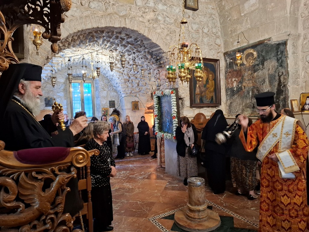 Μετά τήν θείαν Λειτουργίαν ὁ ἀνακαινίσας τόν Ἱερόν Ναόν τῆς Μονῆς καθηγούμενος Σεβασμιώτατος Ἀρχιεπίσκοπος Λύδδης κ. Δημήτριος παρέθεσε κέρασμα εἰς τό ἡγουμενεῖον καί εἰς τό προαύλειον τοῦ Ναοῦ.