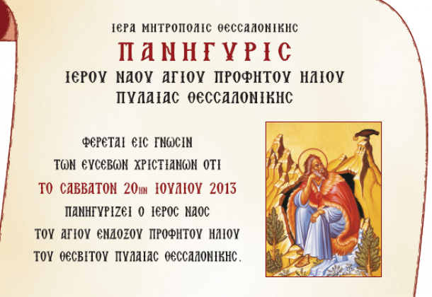 Στις λαμπρές εορταστικές εκδηλώσεις για τη μνήμη του Προφήτη Ηλία του Θεσβίτη θα έχουν την ευκαιρία να παρευρεθούν οι κάτοικοι της Πυλαίας στη Θεσσαλονίκη.