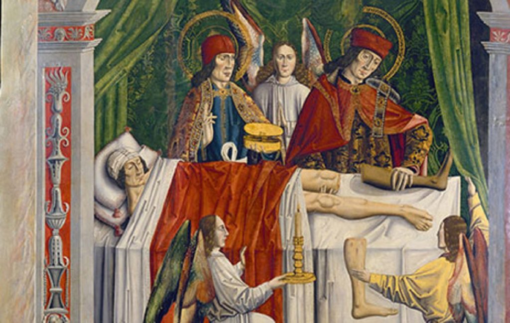 Οι Ιταλοί ερευνητές υποστηρίζουν ότι είναι η πρώτη απεικονιζόμενη σε ζωγραφική αναπαράσταση μεταμόσχευση άκρων. Το συγκεκριμένο έργο τέχνης, το οποίο έγινε με τέμπερα και φύλλο χρυσού στον πίνακα, είναι τρόπον τινά μια αγιογραφία που απεικονίζει το θαύμα του 474 μ.Χ. από τον Ιταλό καλλιτέχνη Matteo di Pacino. Να σημειώσουμε ότι υπάρχουν και πολλοί μεταγενέστεροι πίνακες που αποτυπώνουν το ίδιο γεγονός!