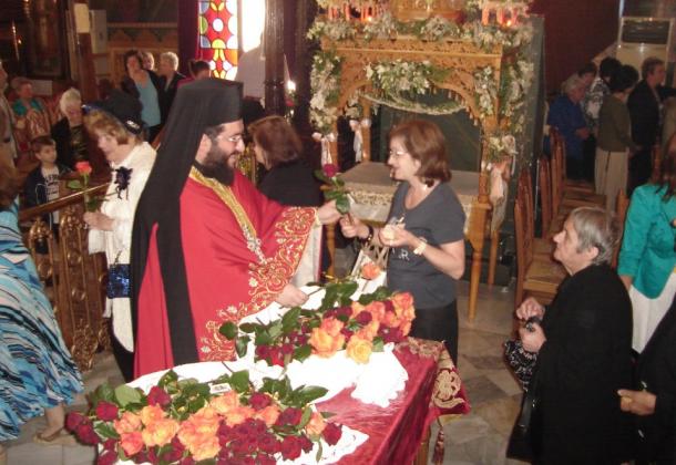 Ο προϊστάμενος του Ναού Αρχιμανδρίτης Φίλιππος Χαμαριάς είχε προμηθευτεί περίπου 500 κόκκινα τριαντάφυλλα.