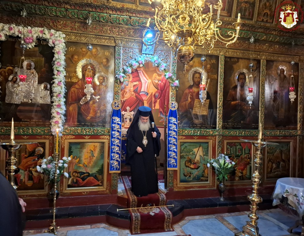 Διαρκούσης τῆς θείας Λειτουργίας ἐπεσκέφθη τὸν ἱερὸν Ναὸν ὁ Μακαριώτατος Πατὴρ ἡμῶν καὶ Πατριάρχης Ἱεροσολύμων κ.κ. Θεόφιλος μετὰ συνοδείας Αὐτοῦ διά προσκύνησιν.
