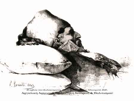 Ο ίδιος δημιουργός υπογράφει και άλλο ένα σχέδιο με τον Κολοκοτρώνη, το οποίο δείχνει τον Έλληνα οπλαρχηγό όρθιο, ντυμένο με τη στολή του και οπλισμένο….