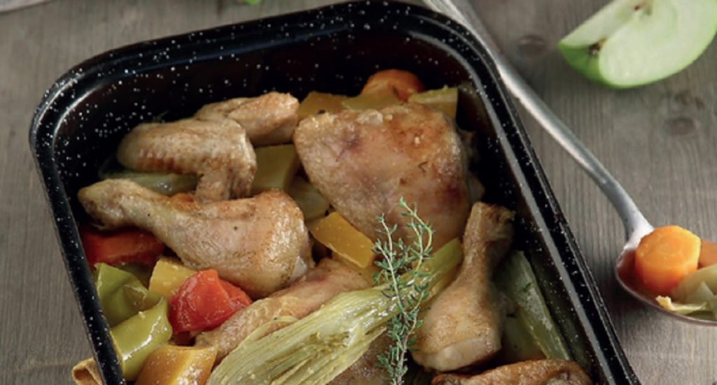 Τα υλικά που θα χρειαστούμε για το κοτόπουλο στιφάδο στη γάστρα είναι: