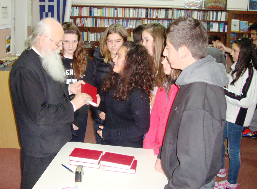 Ο π. Βασίλειος επεσήμανε ότι η Καινή Διαθήκη είναι απαραίτητη ««για να μπορούν να μελετούν τον Λόγο του Θεού και να έχουν ένα πολύτιμο εφόδιο και όπλο για την πορεία της ζωής τους».
