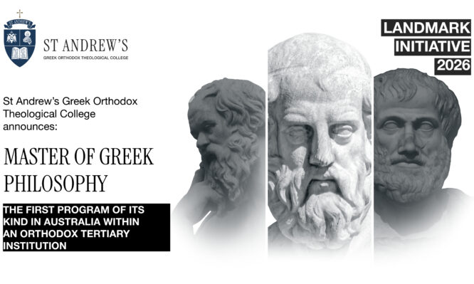 Με μεγάλη χαρά και ικανοποίηση η Θεολογική Σχολή του Αποστόλου Ανδρέου, στο Σύδνεϋ, ανακοινώνει μια ακαδημαϊκή πρωτοβουλία – ορόσημο: την εισαγωγή ενός νέου μεταπτυχιακού προγράμματος, του Μεταπτυχιακού με αντικείμενο την Ελληνική Φιλοσοφία, που θα ξεκινήσει από το Ακαδημαϊκό Έτος 2026. Πρόκειται για μια ιστορική εξέλιξη τόσο για τη Θεολογική Σχολή, όσο και για τον ευρύτερο ακαδημαϊκό χώρο στην Αυστραλία, η οποία αναδεικνύει τη διαρκή συμβολή της ελληνικής φιλοσοφικής σκέψης στη θεολογία, τον πολιτισμό και τη διαμόρφωση του ανθρωπίνου προσώπου.