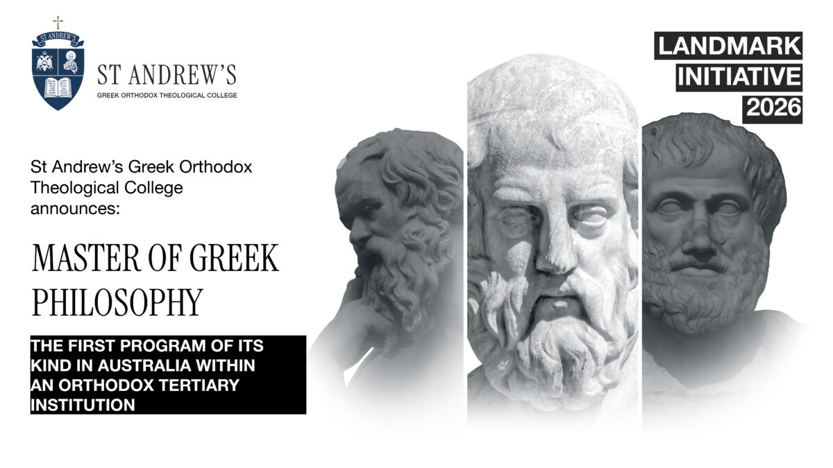 Με μεγάλη χαρά και ικανοποίηση η Θεολογική Σχολή του Αποστόλου Ανδρέου, στο Σύδνεϋ, ανακοινώνει μια ακαδημαϊκή πρωτοβουλία – ορόσημο: την εισαγωγή ενός νέου μεταπτυχιακού προγράμματος, του Μεταπτυχιακού με αντικείμενο την Ελληνική Φιλοσοφία, που θα ξεκινήσει από το Ακαδημαϊκό Έτος 2026. Πρόκειται για μια ιστορική εξέλιξη τόσο για τη Θεολογική Σχολή, όσο και για τον ευρύτερο ακαδημαϊκό χώρο στην Αυστραλία, η οποία αναδεικνύει τη διαρκή συμβολή της ελληνικής φιλοσοφικής σκέψης στη θεολογία, τον πολιτισμό και τη διαμόρφωση του ανθρωπίνου προσώπου.