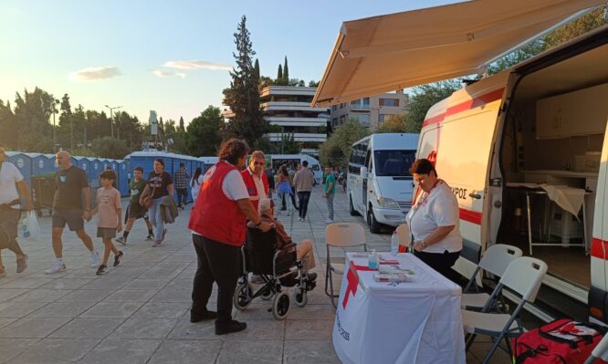 Συγκεκριμένα, Εθελοντές Σαμαρείτες-Διασώστες και νοσηλευτικό προσωπικό του Ελληνικού Ερυθρού Σταυρού παρείχαν υγειονομική κάλυψη στους Υγειονομικούς Σταθμούς του Ε.Ε.Σ, προσφέροντας Πρώτες Βοήθειες σε δεκάδες περιστατικά μικροτραυματισμών που προέκυψαν στους θεατές. Παράλληλα, ο κόσμος είχε τη δυνατότητα να ενημερωθεί από τους εθελοντές του Οργανισμού για το πολύπλευρο ανθρωπιστικό έργο που παράγει καθημερινά ο Ελληινκός Ερυθρός Σταυρός.