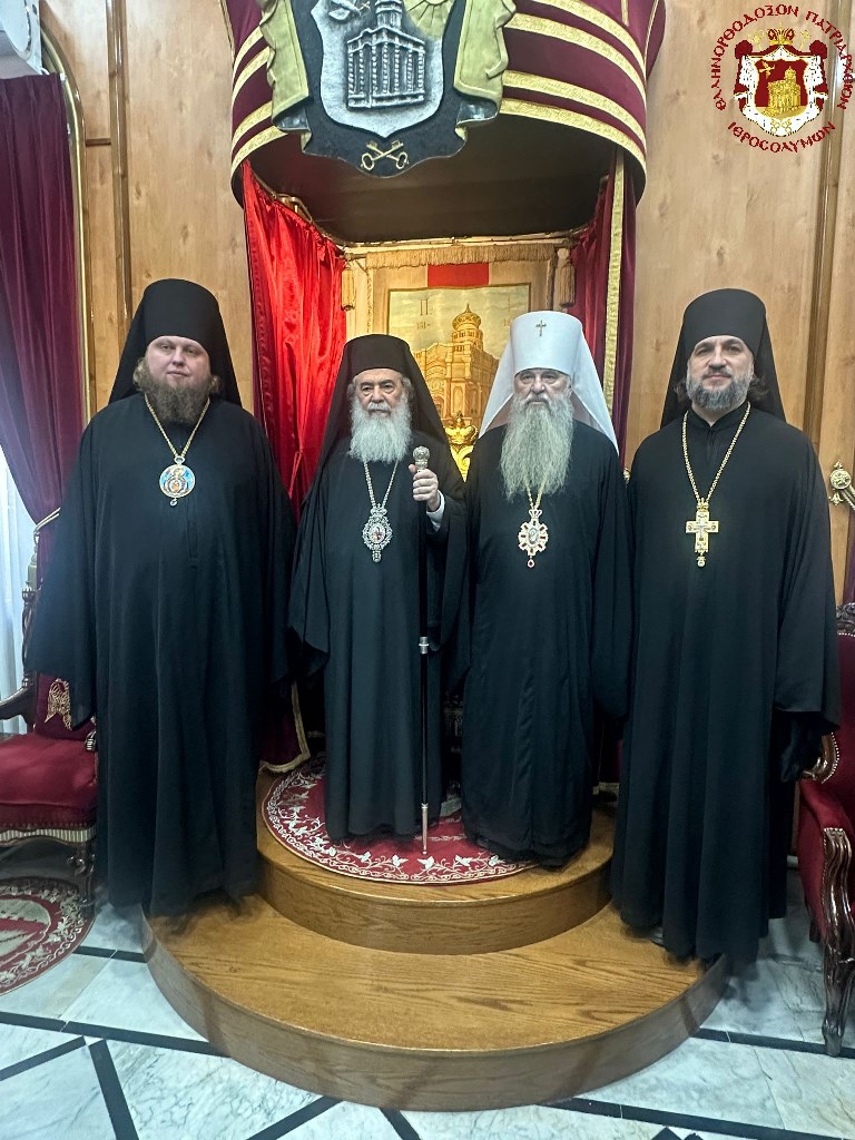 Ὁ Σεβασμιώτατος Μητροπολίτης Πετρουπόλεως κ. Βαρσανούφιος, γιγνόμενος δεκτὸς παρὰ τοῦ Μακαριωτάτου Πατρὸς ἡμῶν καὶ Πατριάρχου Ἱεροσολύμων κ.κ. Θεοφίλου ἐπῄνεσεν Αὐτὸν διά τὰς προσπαθείας Αὐτοῦ στηρίξεως τῶν Χριστιανῶν τῆς Ἁγίας Γῆς καὶ διατηρήσεως τῆς ἑνότητος τῶν Ὀρθοδόξων Ἐκκλησιῶν.