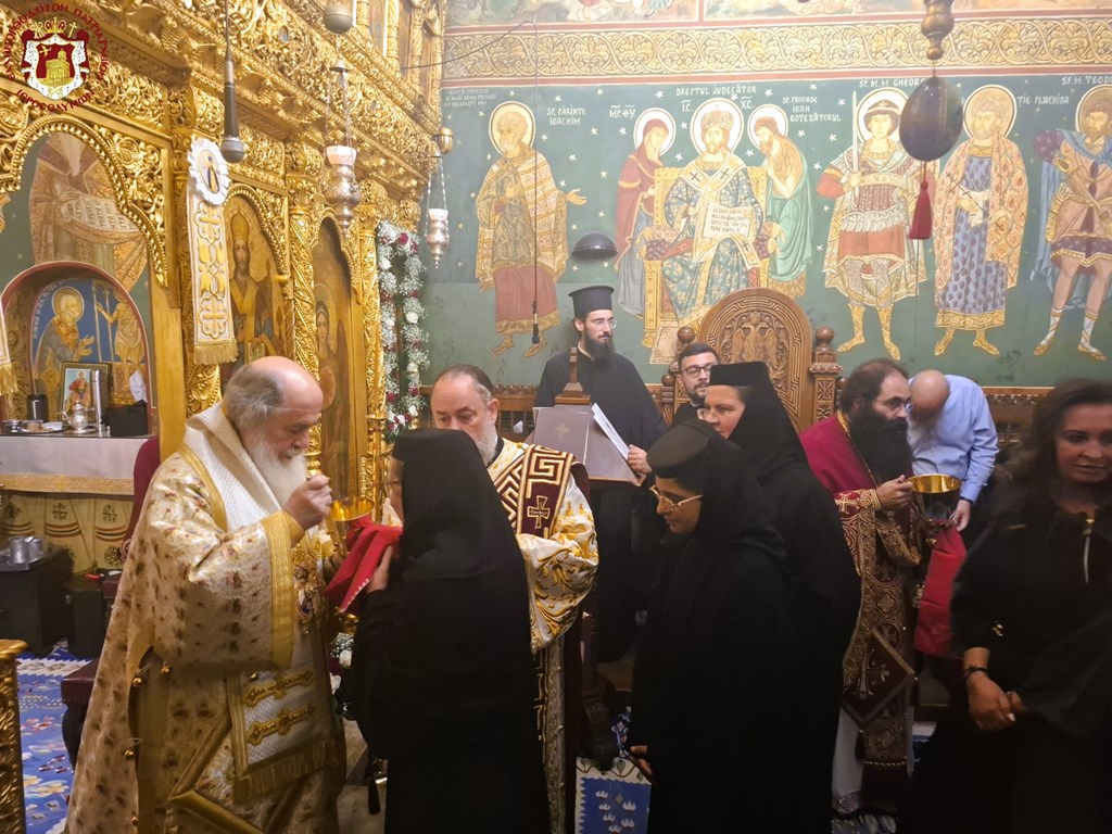 Μετὰ τὴν θείαν Λειτουργίαν ἠκολούθησε κέρασμα εἰς τὸ ἡγουμενεῖον καὶ τράπεζα διὰ τὸν Μακαριώτατον καὶ τὴν συνοδείαν Αὐτοῦ.