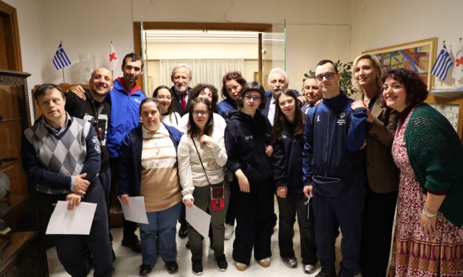 Ο Πρόεδρος του Ελληνικού Ερυθρού Σταυρού υποδέχθηκε αθλητές των Special Olympics Hellas που έψαλαν τα χριστουγεννιάτικα κάλαντα