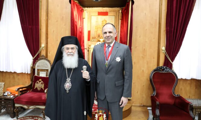 Τον Πατριάρχη Ιεροσολύμων κ. Θεόφιλο Γ΄ επισκέφθηκε ο Έλληνας Υπουργός Εξωτερικών κ. Γεραπετρίτης, τη Δευτέρα, 3 Φεβρουαρίου 2025.