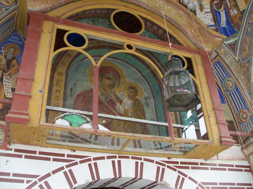 Όταν κατά το 1822 το Άγιον Όρος κατελήφθηκε από τουρκική φρουρά, ένας στρατιώτης τόλμησε να πυροβολήσει την εικόνα της Θεοτόκου που βρίσκεται εξωτερικά πάνω από την είσοδο της μονής.