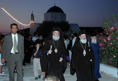 Ο Πατριάρχης Αλεξανδρείας και πάσης Αφρικής κ. Θεόδωρος Β’ και ο Αρχιεπίσκοπος Αθηνών και πάσης Ελλάδος κ. Χριστόδουλος στην πανήγυρη του 2005 (Πηγή το Κάστρο της Αμοργού)