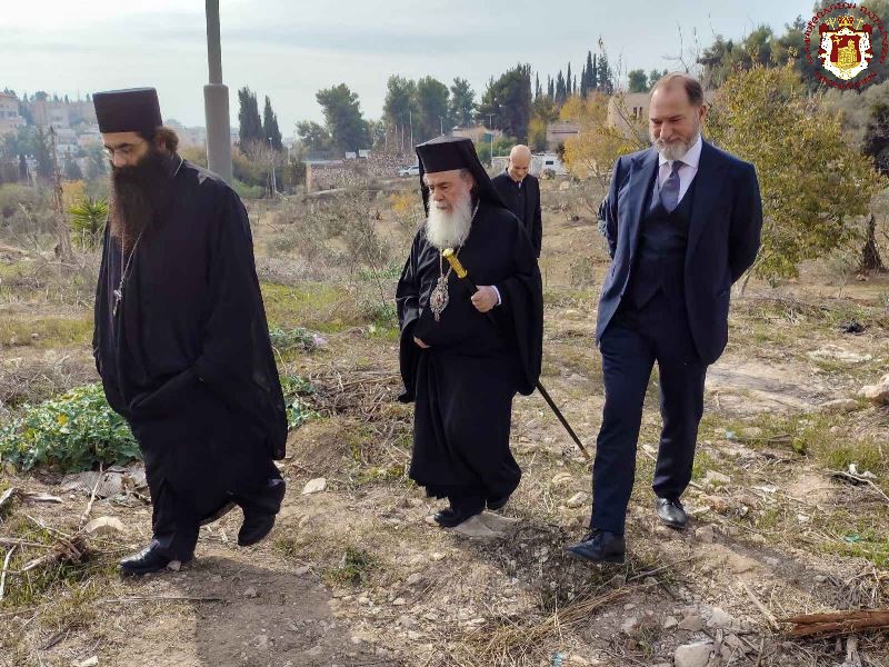 Τό Σάββατον, 24ην Νοεμβρίου / 7ην Δεκεμβρίου 2024, ὁ Μακαριώτατος Πατήρ ἡμῶν καί Πατριάρχης Ἱεροσολύμων κ.κ. Θεόφιλος, συνοδευόμενος ὑπό τοῦ Γέροντος Ἀρχιγραμματέως Σεβασμιωτάτου Ἀρχιεπισκόπου Κωνσταντίνης κ. Ἀριστάρχου, τοῦ Γενικοῦ Προξένου τῆς Ἑλλάδος εἰς Ἱεροσόλυμα κ. Δημητρίου Ἀγγελοσοπούλου τοῦ καθηγητοῦ κ. Φαίδωνος Κυδωνιάτου καί τοῦ Ἀρχιμανδρίτου π. Βαθολομαίου καί γενόμενος δεκτός ὑπό τοῦ Ἡγουμένου τῆς Ἱερᾶς Μονῆς Ἀρχιμανδρίτου π. Χριστοδούλου ἐπεσκέφθη τήν Ἱεράν Μονήν τοῦ Σταυροῦ καί ἐπετήρησε τάς γενομένας ἐργασίας δενδροφυτεύσεως τοῦ κτήματος πέριξ τῆς Μονῆς καί τάς ἐργασίας ὑποδομῆς τοῦ μέλλοντος νά λειτουργήσῃ εἰς τήν Μονήν ταύτην Κέντρου Εἰδικῶν Μελετῶν.