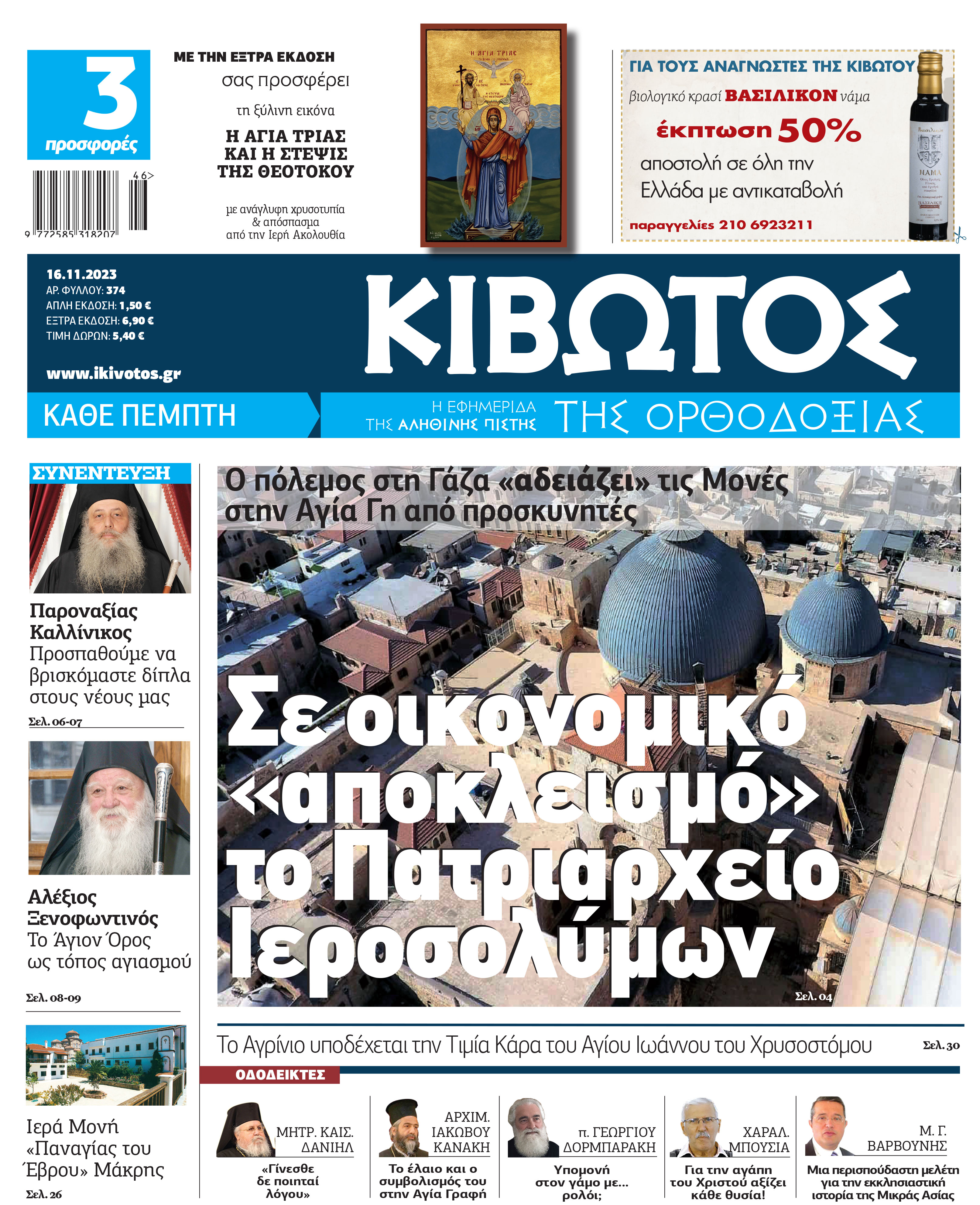 Οι Προσφορές της εφημερίδας ΚΙΒΩΤΟΣ ΤΗΣ ΟΡΘΟΔΟΞΙΑΣ, την Πέμπτη, 16 Νοεμβρίου 2023