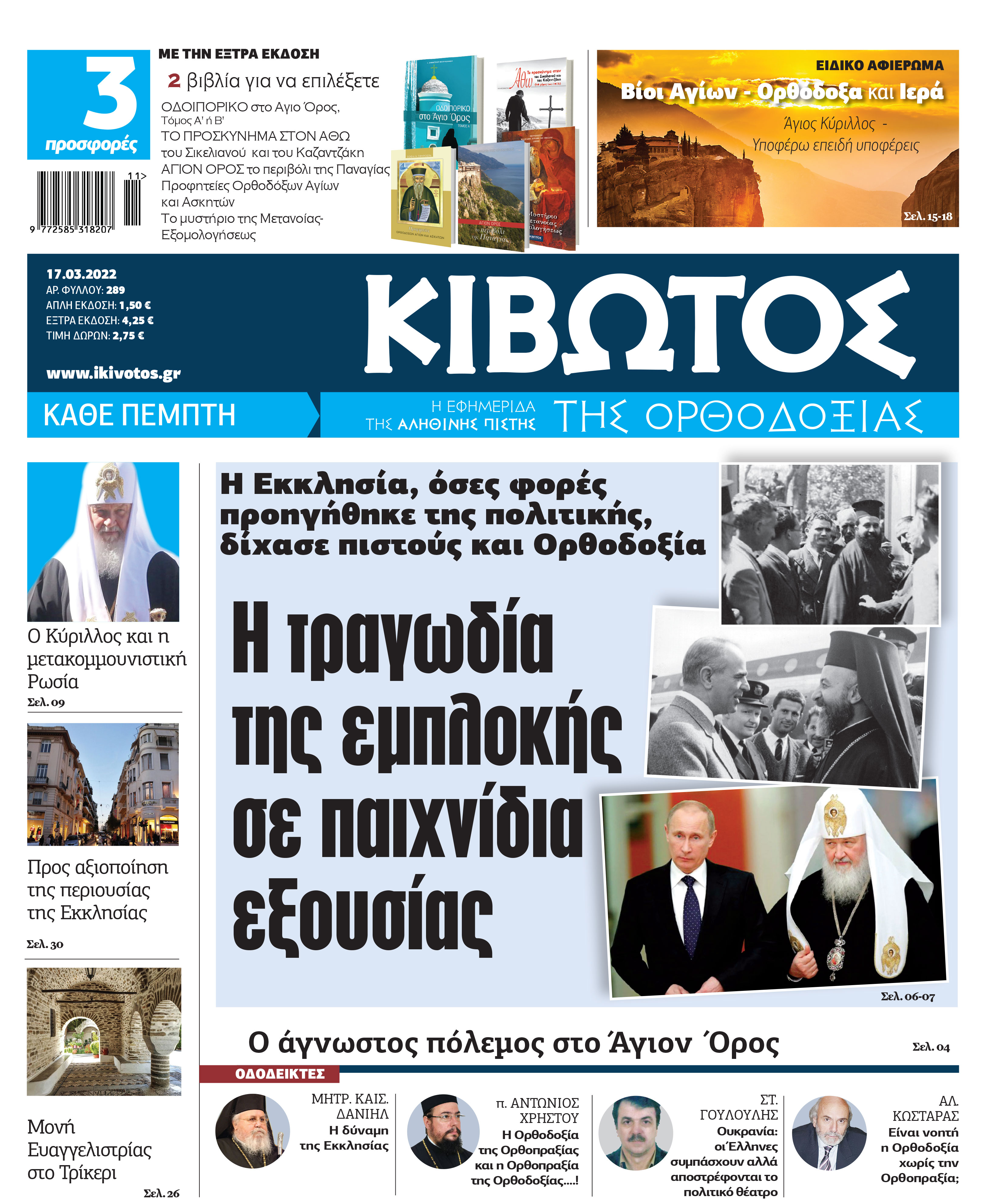 Την Πέμπτη, 17 Μαρτίου, κυκλοφορεί το νέο φύλλο της εφημερίδας ΚΙΒΩΤΟΣ ΤΗΣ ΟΡΘΟΔΟΞΙΑΣ