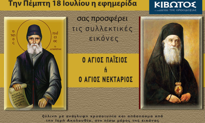 Την Πέμπτη, 18 Ιουλίου, κυκλοφορεί το νέο φύλλο της Εφημερίδας «Κιβωτός της Ορθοδοξίας» – Όλες οι Προσφορές