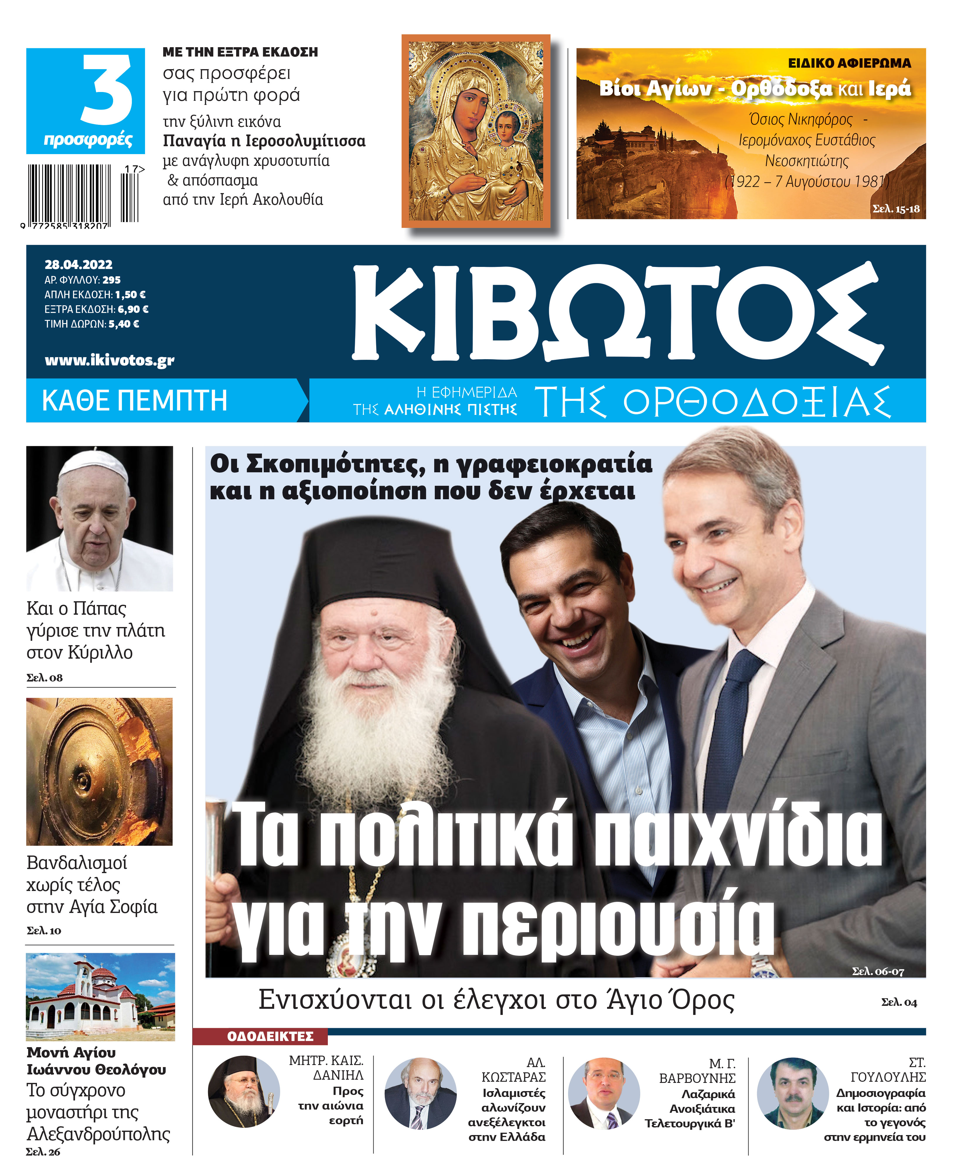 Δείτε εδώ τις Προσφορές: Την Πέμπτη, 28 Απριλίου, κυκλοφορεί το νέο φύλλο της Εφημερίδας «Κιβωτός της Ορθοδοξίας» | Dogma