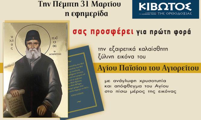 Την Πέμπτη, 31 Μαρτίου, κυκλοφορεί το νέο φύλλο της Εφημερίδας «Κιβωτός της Ορθοδοξίας»