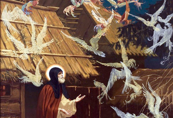 Μια βραδιά που ο όσιος Σέργιος προσευχόταν μέσα στη γαλήνη για τους υποτακτικούς του, άκουσε μια φωνή που τον καλούσε: