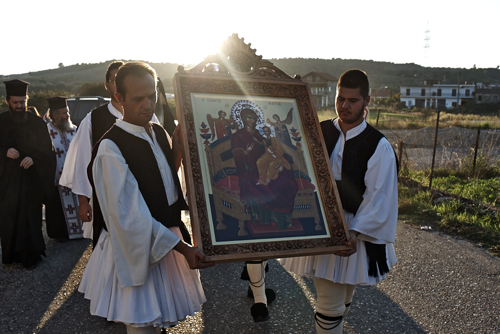 Η Εικόνα αποτελεί ευλαβική δωρεά ανωνύμου δωρητού, αγιογραφήθηκε από τους πατέρες της Ιεράς Μεγίστης Μονής Βατοπεδίου και θα παραμείνει μόνιμα στον Ιερό Ναό Αγίου Δημητρίου.