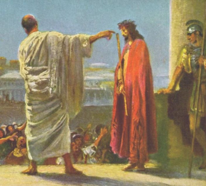 Επί των ημερών του Ρωμαίου αυτοκράτορος Τιβερίου και του επάρχου της Ρώμης στην Ιουδαία, Ποντίου Πιλάτου, ο Ιησούς σύρεται από τον όχλο των άναρχων στρατιωτών εις τον αρχιερέα των Ιεροσολύμων Καϊάφα και εις τον πεθερόν του τελευταίου και πρώην αρχιερέα Άννα, ο οποίος ασκούσε μεγάλη και καταλυτική επιρροή εις τα λοιπά ιερατικά μέλη του Συνεδρίου.
