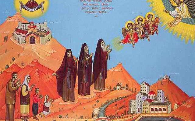 Με πολύ κόπο ανέβασε τον άρρωστο στους αδύνατους ώμους του ο γέρο Ηγούμενος. Το βάρος στην αρχή του φάνηκε ασήκωτο. Με μεγάλη δυσκολία κατόρθωσε να σέρνει τα πόδια του. Παράδοξο πράγμα! Σιγά-σιγά αλάφραινε, ώσπου σε μια στιγμή του φάνηκε πως του έφυγε από την πλάτη το φορτίο. Σήκωσε το κεφάλι να ιδεί τι συνέβαινε. Αντί του φτωχού γέρου, που είχε πάρει στους ώμους του, στεκόταν μπροστά του ένας πανέμορφος Άγγελος.