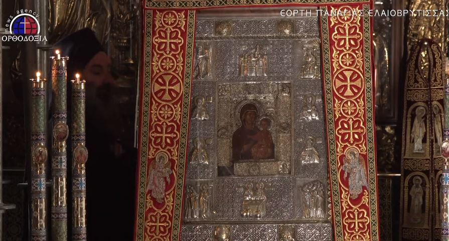 Βρίσκεται στο ¨δοχείο» (αποθήκη υγρών: λαδιού, κρασιού) της μονής Βατοπεδίου και διηγούνται το εξής θαύμα γι’ αυτήν: