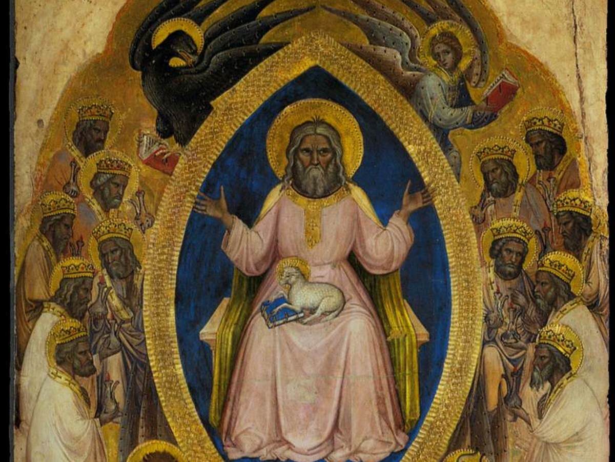 Φωτογραφία: Κεντρικό τμήμα του πολύπτυχου «Αποκάλυψη» του Jacobello Alberegno (1360-90). Τέμπερα σε ξύλο (95 x 61 εκ.), απεικονίζει σκηνές από την Αποκάλυψη του Ιωάννη με βυζαντινή επιρροή. Gallerie dell’Accademia, Βενετία, (Λεπτομέρεια).