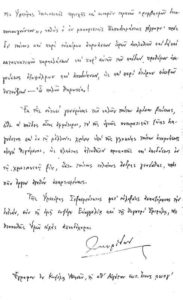 Θά παραθέσω καί τίς δύο αὐτούσιες καί ἰδιόχειρες αὐτές ἐπιστολές ὡς ὑπόδειγμα λόγου, εὐπρέπειας, εὐγένειας καί πλουσίων αἰσθημάτων.
