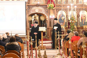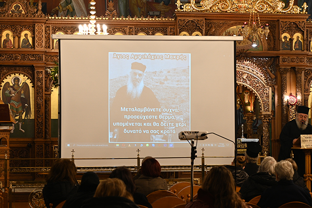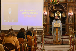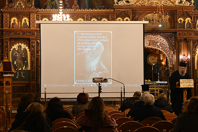 Την ομιλία ακολούθησε Μικρό Απόδειπνο μετά Χαιρετισμών στην Υπεραγία Θεοτόκο και Μονολόγιστη Ευχή υπέρ καταπαύσεως της πανδημίας.