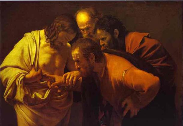 Ένας εκ των μαθητών ο Θωμάς ήτο απών κατά την εμφάνιση του Κυρίου εις το υπερώον. Όταν επέστρεψε και ήκουσε τις διαβεβαιώσεις των λοιπών Μαθητών δεν επίστευσε.