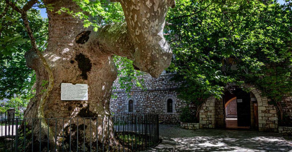 Τη μονή Μ.Λαύρας βεβήλωσαν οι Γερμανοί. Εδώ κατέληξε η φονική αιχμή της ειδικής ομάδας εκτελεστών (117η Μεραρχία Καταδρομών, έδρα Κορινθία) τον Δεκέμβριο του 1943 θερίζοντας κάπου πενήντα χωριά της περιοχής από τον κάμπο και προς τα πάνω. Απέναντι κάτω στα Καλάβρυτα, στις ρίζες της πλαγιάς στήθηκε το εκτελεστικό απόσπασμα των Γερμανών στις 13/12/1943, όπου μεταφέρθηκαν για αντίποινα τα θύματα από την περιοχή των Καλαβρύτων, όλος ο ανδρικός πληθυσμός, φτάνοντας το πιο υψηλό νούμερο στην Κατοχή. Ο τεράστιος αριθμός των θυμάτων, η κατάληξη της πορείας του θανάτου στη Λαύρα, η μη χρησιμοποίηση του τακτικού στρατού που δεν είχε άτομα ικανά να κάνουν θηριωδίες τέτοιας εμβέλειας, δεν μπορούν να δικαιολογηθούν για λίγες δεκάδες Γερμανών που φονεύθηκαν από αντάρτες. Ότι έγινε γερμανική κατοχική επικάλυψη αυτού του ίδιου του θρύλου της ελληνικής ‘εθνογένεσης’ είναι σίγουρο. Οι άνθρωποι της μονής εκτελέστηκαν κάτω από τον ιστορικό πλάτανο της Εθνεγερσίας (14/12/1943)! Το θέμα, λοιπόν, είναι αν προγραμματίστηκε ως θανατηφόρος ΑΝ.ΣΚ. Ο αντίκτυπος θα ήταν έτσι πιο έντονος στην υπόλοιπη Ελλάδα. Όλα να τα περιμένει κανείς από την πιο σκοτεινή πολιτική παραθρησκεία, τη ναζιστική -δαιμονιώδης ή δαιμονική ;- δηλαδή να οφείλεται σε εσκεμμένη πρόθεση να ποδοπατήσουν τον νέο ελληνισμό στην ιερή κοιτίδα του. Στον χώρο όπου εκφράσθηκε το ηθικό πλεονέκτημα ενός έθνους που τιμά τον εναρκτήριο (τελετουργικό) εθνικό θρίαμβο, δικαιολογείται ιστορικά η λογική της ανταπόδοσης με έναν ναζιστικό αντι-θρίαμβο. Υπήρξε ανέκαθεν μέσο στην τακτική των ιμπεριαλιστικών δυνάμεων, όντως τεράστιο θέμα. Μόνον ερευνητές του καταστροφικού μαύρου ήλιου των Ναζί, ενός ανάποδου κόσμου, είναι σε θέση να κατανοήσουν τι συνέβη. Ο παλαιός Πλάτανος του εθνικού θριάμβου αλείφθηκε αιμάτινο πανί.