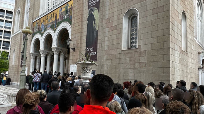 Μικροί και μεγάλοι αναμένουν στη σειρά τους, υπομονετικά προκειμένου να προσκυνήσουν τη θαυματουργό Εικόνα «Άξιον Εστί», που ήδη, ως γνωστόν, από την 3η Μαΐου βρίσκεται στον μητροπολιτικό ναό των Αθηνών.