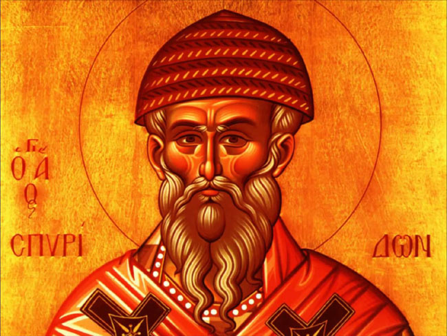 Αρχαία εκκλησιαστική παράδοση αναφέρει, ακόμη, τη συμμετοχή του Αγίου στην Α΄ Οικουμενική Σύνοδο, που συνήλθε στη Νίκαια, το 325, από τον Μέγα Κωνσταντίνο για να επιληφθεί των αιρετικών δοξασιών του Αρείου, ο οποίος αμφισβητούσε τη θεότητα του Xριστού και κατά συνέπεια το τρισυπόστατο της Aγίας Tριάδας. Κατά τη διάρκεια των εργασιών της Συνόδου προκλήθηκε έντονη φιλοσοφική συζήτηση, όπου δέσποζε η φυσιογνωμία του αιρετικού Ευλογίου, ο οποίος με ρητορική δεινότητα υποστήριζε με θέρμη τις απόψεις του. Ο Άγιος τότε με το γνωστό θαύμα με το κεραμίδι, το οποίο πήρε στα χέρια του και, επικαλούμενος τη θεία αρωγή, διεχώρισε στο χώμα από το οποίο κατασκευάστηκε, στο νερό που το ζύμωσε και στη φωτιά που το έψησε, κατέδειξε ότι τρία διαφορετικά στοιχεία μπορούν να αποτελούν ταυτόχρονα ένα. Όπως αναφέρεται, το θαυμαστό αυτό γεγονός κατατρόπωσε τους αιρετικούς και συγκλόνισε τον Ευλόγιο, ο οποίος έσπευσε να αρνηθεί τις δοξασίες του και να προσέλθει στην Ορθοδοξία, αναγνωρίζοντας ότι η αληθινή θεολογία είναι καρπός της θείας Χάριτος, και όχι των φιλοσοφικών ενασχολήσεων.