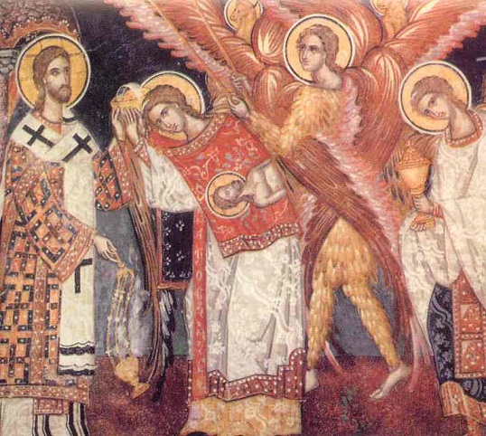 Οι άγγελοι ως κύριο έργο τους έχουν τη δοξολόγηση του Θεού. Ο ̉̉̉άνθρωπος καθίσταται δοξολογική ύπαρξη, μιμούμενος τα αγγελικά τάγματα.̉ «Άνθρωποι και άγγελοι συλλειτουργούν το μυστήριο!». «Άγιος ο Θεός, άγιος ισχυρός, άγιος αθάνατος». Ο Πατήρ, πηγή της αγιότητος, ο Άγιος• ο Υιός, ο Ισχυρός, αυτός που θριαμβεύει πάνω στο θάνατο, το Άγιο Πνεύμα, το ζωοποιό, πνοή της αιώνιας ζωής». (Π. Ευδοκίμωφ).