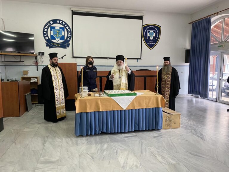 Ο Σεβασμιώτατος επισκέφθηκε τη Σχολή το πρωί της ημέρας, όπου παρουσία της Διοικητού της Σχολής κας Αναστασίας Πουρναρά, Αστυνόμου Α΄, των εκπαιδευτών, αλλά και των δοκίμων αστυφυλάκων πραγματοποίησε την κοπή της πίτας, τηρώντας όλα τα προβλεπόμενα υγειονομικά πρωτόκολλα για την προστασία από τον Covid-19.