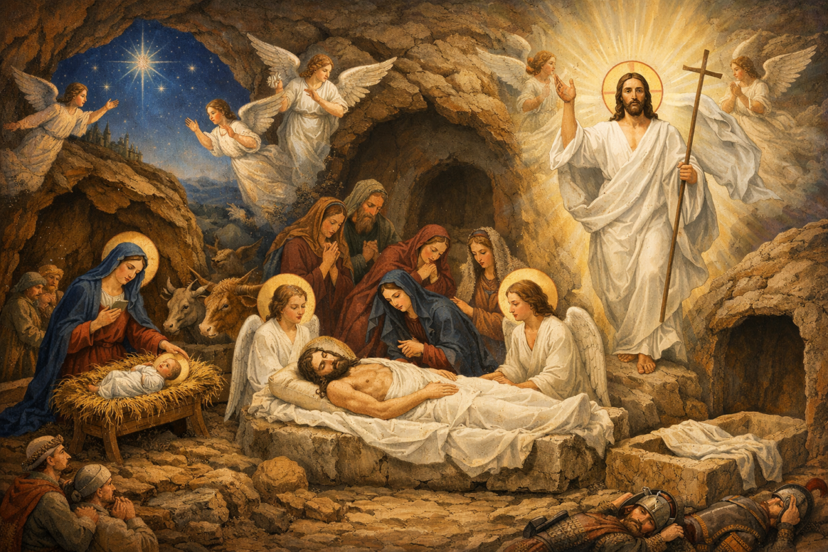 Η φάτνη, το σινδόνι και ο κενός Τάφος δεν είναι τρεις εικόνες· είναι μία αλήθεια, μία ενιαία σωτηριολογική πορεία. Ο Χριστός γεννάται, για να πεθάνει εκουσίως και πεθαίνει για να αναστήσει τον άνθρωπο.