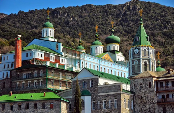 Ο Πανσλαβισμός και η ρωσική προπαγάνδα, όμως, κορυφώθηκαν στην περίπτωση της Μονής του Αγίου Παντελεήμονος, στο γνωστό και ως «ρωσικό» μοναστήρι. Στα μέσα της δεκαετίας του 1870, οι Ρώσοι προσπαθούν να ελέγξουν διοικητικά τη Μονή, χωρίς όμως αποτέλεσμα, έστω αρχικά, μιας και οι εντάσεις και οι έριδες που δημιουργήθηκαν επέφεραν την άρση της μοναχικής ευρυθμίας και κανονικότητας της μοναχικής ζωής.