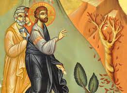 Ο Ιησούς Χριστός πείνασε ως άνθρωπος και πλησίασε μια συκιά προκειμένου να φάγει κάποιους από τους καρπούς του. Μάταια, όμως! Βλέποντας ο Κύριος την ακαρπία του δένδρου, το καταράστηκε και, ευθύς, το δέντρο ξεράθηκε.