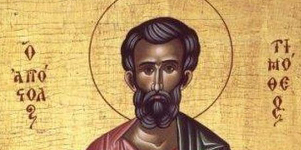 Ο Άγιος Απόστολος Τιμόθεος γεννήθηκε στα Λύστρα της Λυκαονίας από Έλληνα πατέρα και Ιουδαία μητέρα, την Ευνίκη. Έμεινε πολύ μικρός ορφανός από πατέρα και η γιαγιά του, η Λωίδα, τον ανέθρεψε «εν παιδεία και νουθεσία Κυρίου». Όταν ο απόστολος Παύλος επισκέφθηκε τα Λύστρα, εκτιμώντας τα πνευματικά του χαρίσματα και το φλογερό ιεραποστολικό του ζήλο, τον διαπαιδαγωγεί κατάλληλα και τον παίρνει συνοδό του στην Β΄ αποστολική περιοδεία όπου ζει όλες τις περιπέτειες του κορυφαίου αποστόλου για τη διάδοση του Ευαγγελικού μηνύματος. Μετά το μαρτυρικό θάνατο του Παύλου, επιστρέφει στην Έφεσο και συνεχίζει την ιεραποστολική του δράση.