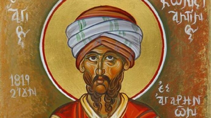 Πηγαίνοντας όμως συχνά στη Μητρόπολη της Σμύρνης, άκουγε και έμαθε την ελληνική γλώσσα και τη χριστιανική θρησκεία. Έφυγε λοιπόν για το Άγιον Όρος, αλλά κανείς δεν τον δεχόταν. Τότε ο εκεί εξόριστος Πατριάρχης Γρηγόριος ο Ε’ (βλέπε 10 Απριλίου), στη Μ. Λαύρα, αφού τον δοκίμασε τον βάπτισε χριστιανό στα Καυσοκαλύβια, με το όνομα Κωνσταντίνος.