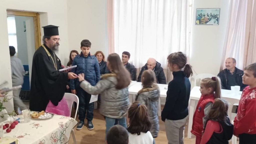 Ὁ Σεβασμιώτατος εἶπε ὅτι ἐκτιμᾶ πολύ τά ἀκριτικά καί ἱστορικά χωριά, ἰδιαιτέρως τά Κορέστεια καί τόν Μελᾶ, ὅπου βλέπει στά μάτια τῶν παιδιῶν τους τήν ζωηράδα καί τήν εὐγένεια. Μίλησε στά παιδιά καταλλήλως γιά τήν ἑορτή τοῦ Πάσχα, τσούγκρισε μαζί τους τό κόκκινο αὐγό καί τούς μοίρασε εὐλογίες πού εἶχε φέρει μαζί του.