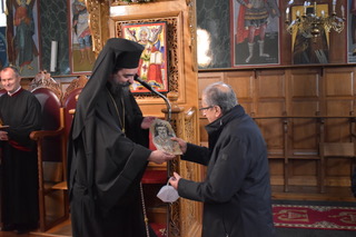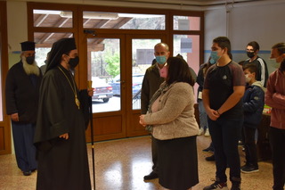 Ὁ Δήμαρχος Νεστορίου κ. Χρῆστος Γκοσλιόπουλος, πού ἦταν παρών, προσεφώνησε τόν Σεβασμιώτατο καλωσορίζοντάς τον στό Νεστόριο, ἐνῶ ὁ Ἐφημέριος π. Γεώργιος προσέφερε στόν Σεβασμιώτατο μιά εἰκόνα πού ἁγιογράφησε ὁ ἴδιος.