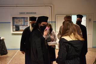 Στήν συνέχεια ὁ Σεβασμιώτατος ἐπισκέφθηκε τό Γυμνάσιο καί Λύκειο τοῦ Νεστορίου, ὅπου μίλησε μέ τούς καθηγητές καί τούς μαθητές, προσφέροντάς τους κάποια βιβλία καί εἰκόνες.