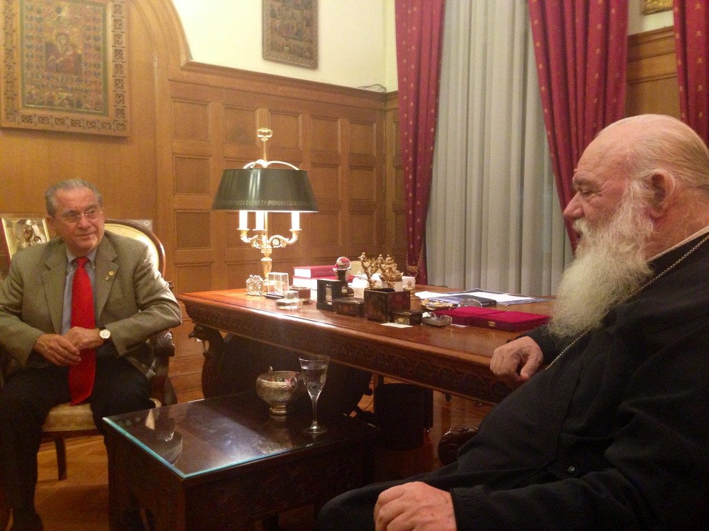 Αργότερα, συναντήθηκε και με τον Αρχιεπίσκοπο Αθηνών κ. Ιερώνυμο συνοδευόμενος από τον κ. Δήμτσα και τον διοικητή της ΑΧΕΠΑ Ελλάς-Περιφέρεια κ. Νίκο Παπαδόπουλο, όπου εξήρε το έργο της «Αποστολής» και εξέφρασε την ικανοποίηση της ομογένειας στην υλοποίηση ενός προγράμματος κοινωνικής ευαισθητοποίησης για τους συνανθρώπους μας που αδυνατούν να αντεπεξέλθουν στις δυσκολίες των καιρών.
