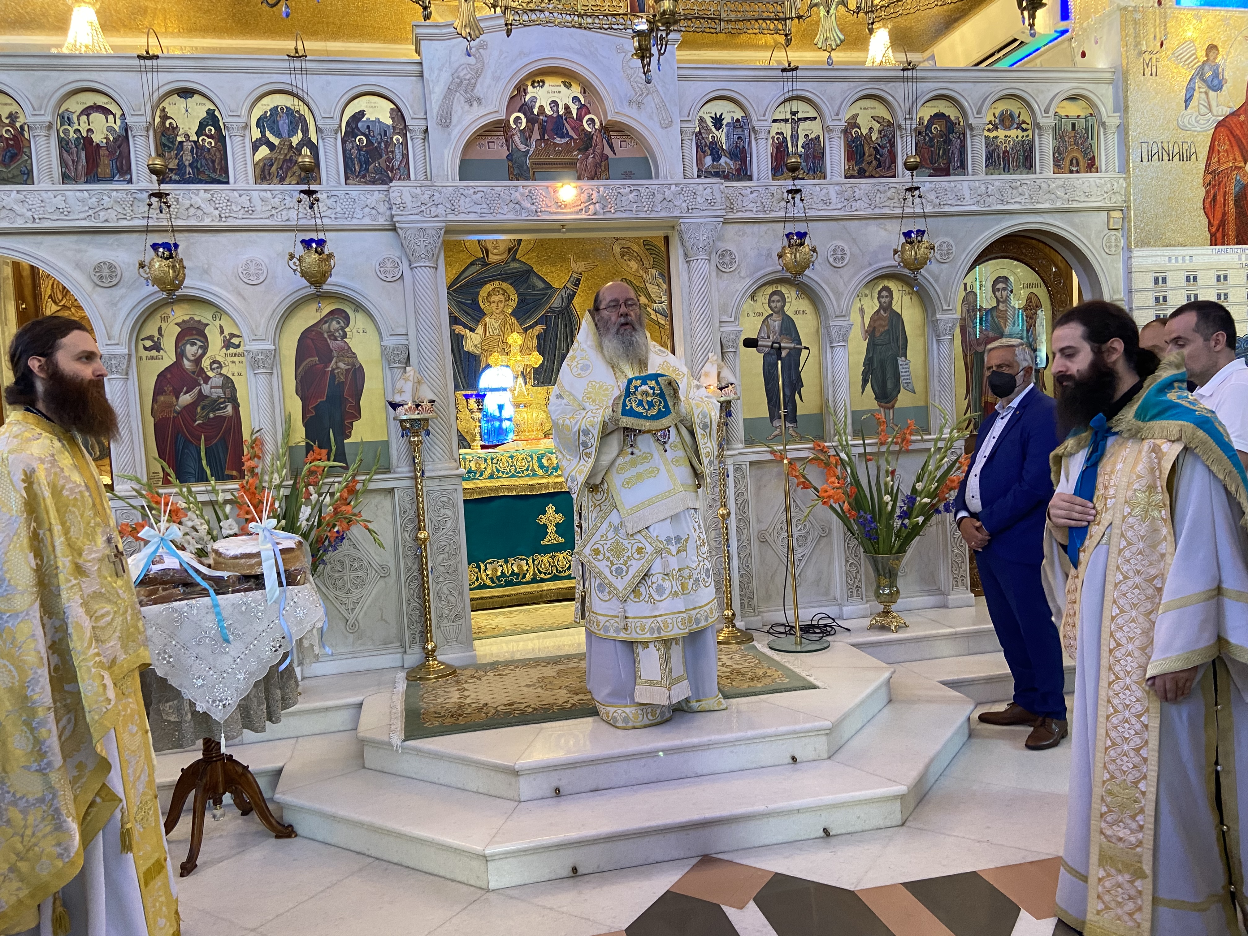Κλείνοντας μετέφερε προς τον εορτάζοντα εφημέριο και το πολυπληθές εκκλησίασμα τις άπειρες, εγκάρδιες, πατρικές ευχές του αγγέλου της τοπικής μας Εκκλησίας του Σεπτού Πατρός και Ποιμενάρχου μας Σεβασμιωτάτου Μητροπολίτου Πατρών κ. κ. Χρυσοστόμου για έτη πολλά, ευλογημένα, αγιασμένα, θεοσκέπαστα και θεοφρούρητα.