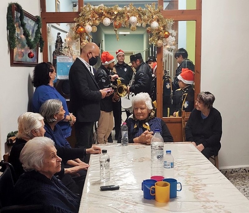 Ο Διευθυντής του Ιδρύματος, Θεοφιλέστατος Επίσκοπος Στρατονικείας κ. Στέφανος υποδέχτηκε τον Δήμαρχο και τους μουσικούς της Φιλαρμονικής, και μέσα σε ζεστή ατμόσφαιρα και με μεγάλη χαρά τα γεροντάκια μας άκουσαν τα κάλαντα και τις χριστουγεννιάτικες μελωδίες, που έπαιξαν οι μουσικοί μας.